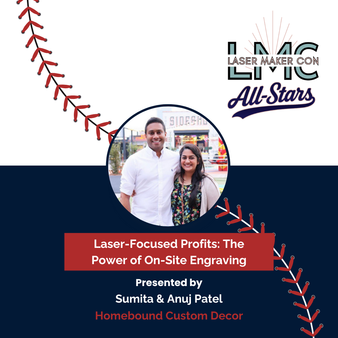 Sumita & Anuj Patel are a husband and wife team that own Home Bound Custom Decor, a laser engraving and uv printing business in Atlanta, GA. They started their journey in 2020 with a small laser at home and have since grown their business to a warehouse operation that houses 7 lasers and a UV printer. They are passionate about sharing the tips for growth and scaling a business with other makers and find joy in empowering others with the tools they need to succeed in the industry.